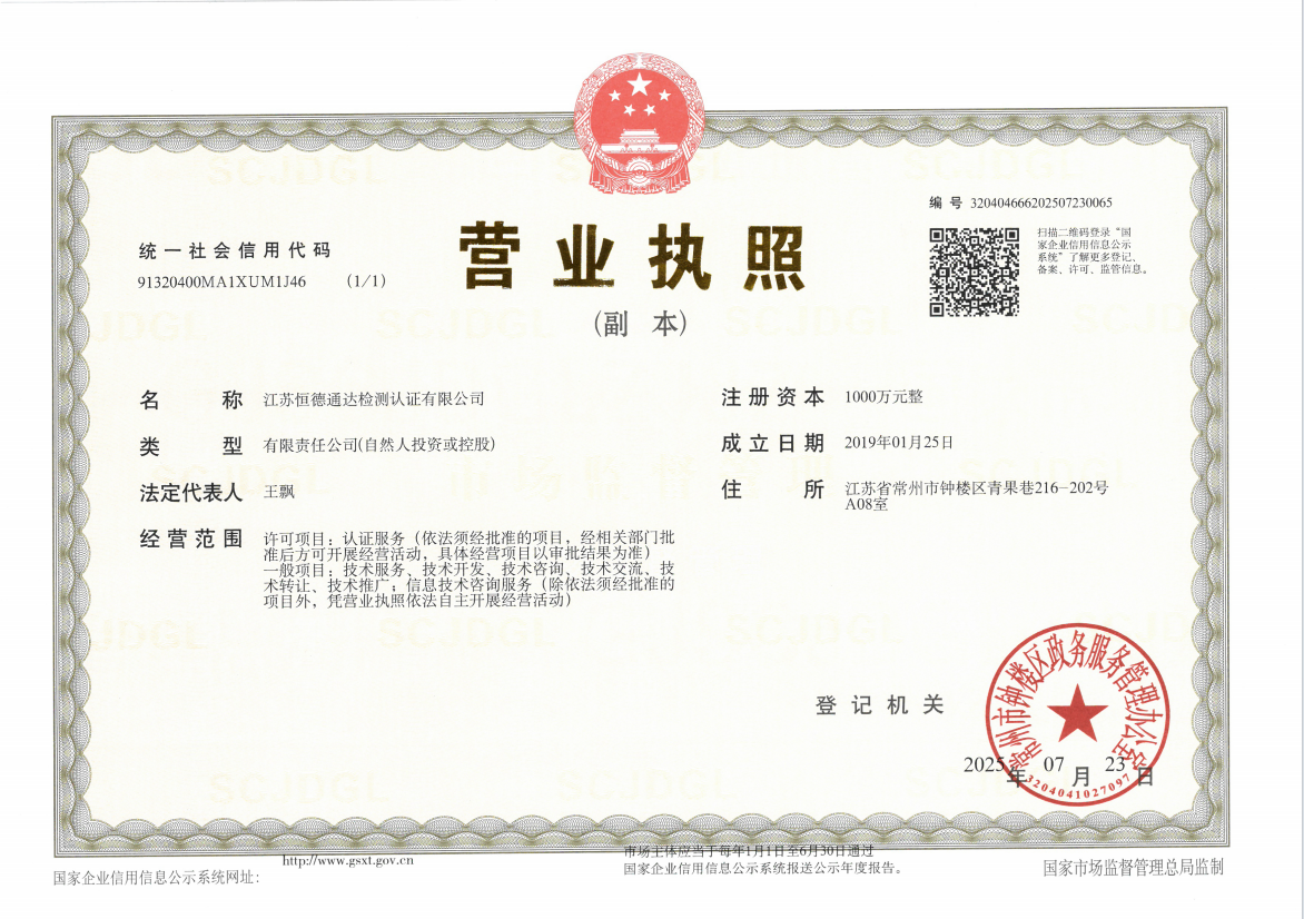 认证认可范围